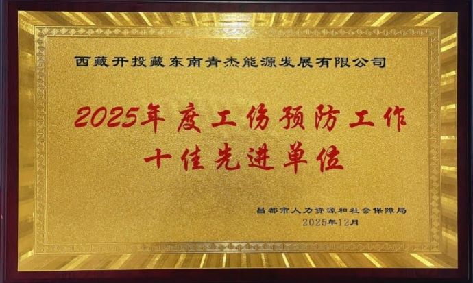 12月9日,昌都市人力資源和社會保障局授予西藏開投藏東南青杰能源公司“2025年度工傷預(yù)防工作十佳先進(jìn)單位”稱號,以表彰公司在工傷預(yù)防與安全管理方面取得的扎實(shí)成效。