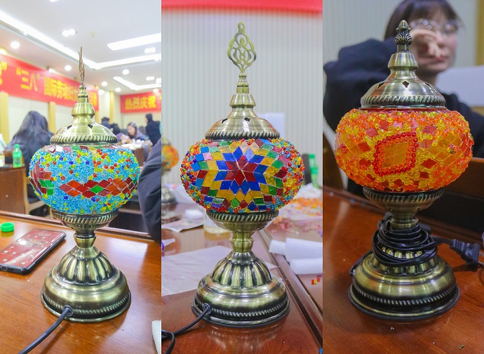 活動中,集團公司工會精心準備了永生玫瑰抱抱熊、土耳其琉璃燈、掐絲琺瑯畫等豐富多樣的手工DIY材料,并特邀經(jīng)驗豐富的手工藝術(shù)指導(dǎo)老師,為女職工們提供專業(yè)而細致的指導(dǎo)。在專業(yè)老師的引領(lǐng)下,女職工們發(fā)揮自己的創(chuàng)造力與想象力,經(jīng)過一番精心制作,最終呈現(xiàn)出一件件精美絕倫的藝術(shù)品。