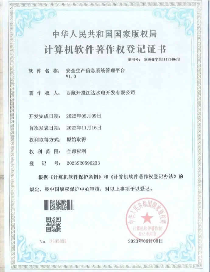 近日,經(jīng)中國版權(quán)保護(hù)中心審核,集團(tuán)公司所屬項(xiàng)目公司申報(bào)的三項(xiàng)軟件著作權(quán)符合《計(jì)算機(jī)軟件保護(hù)條例》和《計(jì)算機(jī)軟件著作權(quán)登記辦法》的相關(guān)規(guī)定,被正式授予計(jì)算機(jī)軟件著作權(quán)登記證書。本次取得證書的3項(xiàng)軟件分別是“安全生產(chǎn)信息系統(tǒng)管理平臺(tái)V1.0”“電子檔案信息化管理系統(tǒng)V1.0”“水電工程征地移民安置檔案信息管理系統(tǒng)V1.0”。