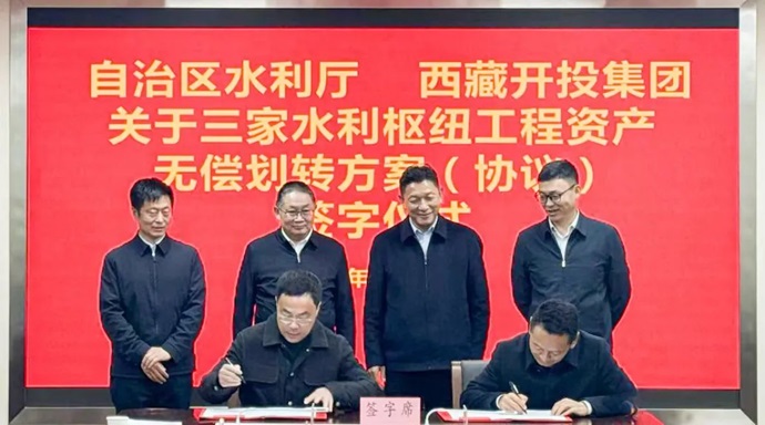 12月11日,自治區(qū)水利廳與西藏開(kāi)投集團(tuán)在拉薩簽署旁多、滿拉、拉洛三大水利樞紐工程資產(chǎn)無(wú)償劃轉(zhuǎn)協(xié)議,標(biāo)志著西藏國(guó)有企業(yè)改革邁出堅(jiān)實(shí)步伐。自治區(qū)水利廳黨組副書(shū)記、廳長(zhǎng)和忠華,區(qū)政府國(guó)資委黨委委員、副主任于雷,西藏開(kāi)投集團(tuán)黨委書(shū)記、董事長(zhǎng)祁騰武出席簽字儀式并講話。自治區(qū)水利廳黨組成員、副廳長(zhǎng)趙輝與西藏開(kāi)投集團(tuán)黨委委員、副總經(jīng)理尼瑪代表雙方簽署協(xié)議。集團(tuán)領(lǐng)導(dǎo)羅布次仁、陳焱罡出席儀式。