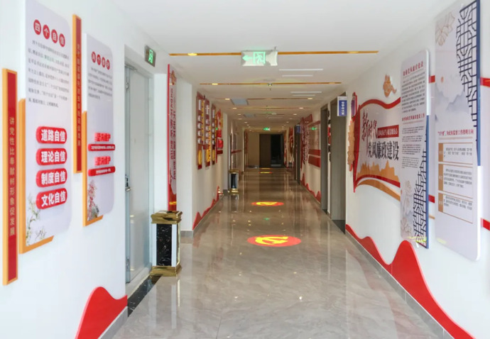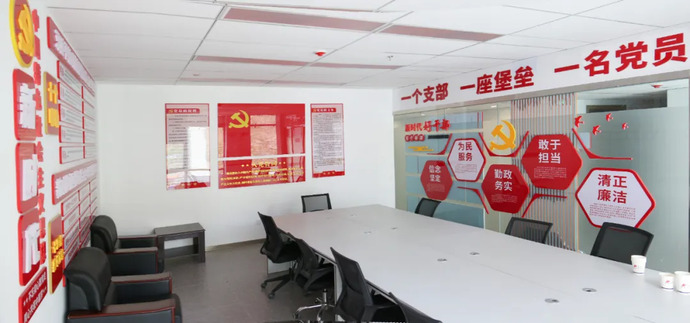 集團(tuán)黨建活動陣地位于集團(tuán)辦公樓11樓,占地180㎡,分為黨建文化長廊、黨員活動室、支部會議室三個功能區(qū),集黨員學(xué)習(xí)教育、組織生活開展、黨建成果展示等功能于一體。其中,黨建文化長廊由黨建引領(lǐng)發(fā)展、傳承紅色精神、筑牢戰(zhàn)斗堡壘、挺膺擔(dān)當(dāng)奮進(jìn)、構(gòu)建精神文明、建設(shè)廉政文化六個部分組成,圖文并茂的形式讓每一位走過長廊的黨員都能深刻領(lǐng)悟黨建工作的深刻內(nèi)涵。黨員活動室包含了組織架構(gòu)展示、榮譽展示、黨建工作展示、學(xué)習(xí)區(qū)等內(nèi)容,配備桌椅茶幾等休閑設(shè)施,布置溫馨,氛圍濃厚。