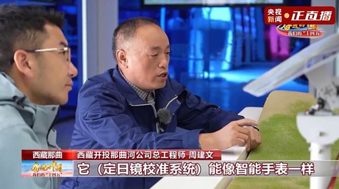 西藏開投那曲河公司總工程師周建文說:“它是我們電站的一個定日鏡,它很智能,它頭頂裝了太陽能追蹤器。它(定日鏡校準系統(tǒng))能像智能手表一樣,監(jiān)測'心跳',能夠?qū)崟r監(jiān)測太陽的方位角和高度角,精度達0.1度。”