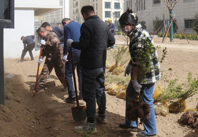 活動(dòng)現(xiàn)場,在聽取工作人員講解植樹注意事項(xiàng)后,大家三五一組、分工協(xié)作,有的揮鍬鏟土、填苗澆水,有的培土圍堰、澆水灌溉,還有的清掃垃圾、搬運(yùn)雜物?,F(xiàn)場氣氛活躍、組織有序,呈現(xiàn)出一片熱火朝天的忙碌景象。每道工序一絲不茍、認(rèn)真細(xì)致,展現(xiàn)了團(tuán)結(jié)協(xié)作、奮發(fā)向上的精神風(fēng)貌。