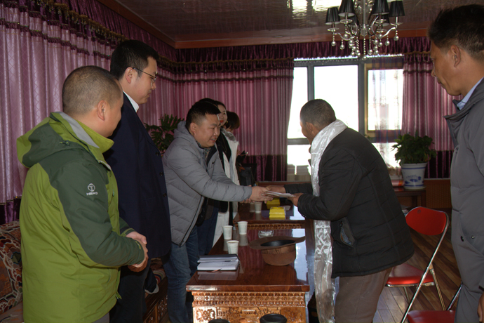 柳梧村村委達(dá)瓦書記對大家的到來表示熱烈的歡迎,對西藏開投集團(tuán)組織開展這項工作表示贊賞。他說:“西藏開投集團(tuán)是區(qū)管國有企業(yè)中第一家組織在職黨員進(jìn)我們社區(qū)開展慰問的企業(yè),意義重大,效果明顯。西藏開投集團(tuán)成立雖晚,但在積極參與社會主義新西藏建設(shè)中邁的步伐很大,工作做的實在,體現(xiàn)了西藏開投集團(tuán)的責(zé)任擔(dān)當(dāng)。通過今天的活動,不但加深了雙方的熟悉和了解,而且也讓柳梧村的牧民百姓,尤其是受到西藏開投集團(tuán)特殊慰問關(guān)懷的2戶老黨員更加感受到了黨的溫暖和關(guān)愛,更加會珍惜這個來之不易的幸福生活”。