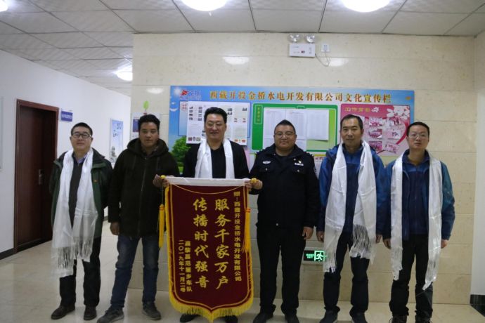 12月4日,尼屋鄉(xiāng)派出所副所長多吉帶領(lǐng)尼屋鄉(xiāng)扶貧車隊(duì)代表將“服務(wù)千家萬戶 傳播時代強(qiáng)音”錦旗遞送到西藏開投金橋水電開發(fā)有限公司(以下簡稱“金橋公司”)副總經(jīng)理李輝手中,表達(dá)對金橋公司的深深謝意。