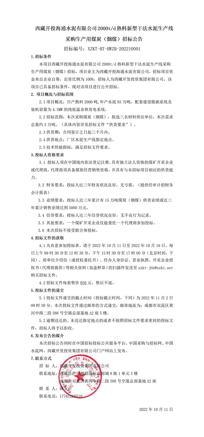 采購生產(chǎn)用煤炭(煙煤)招標(biāo)公告