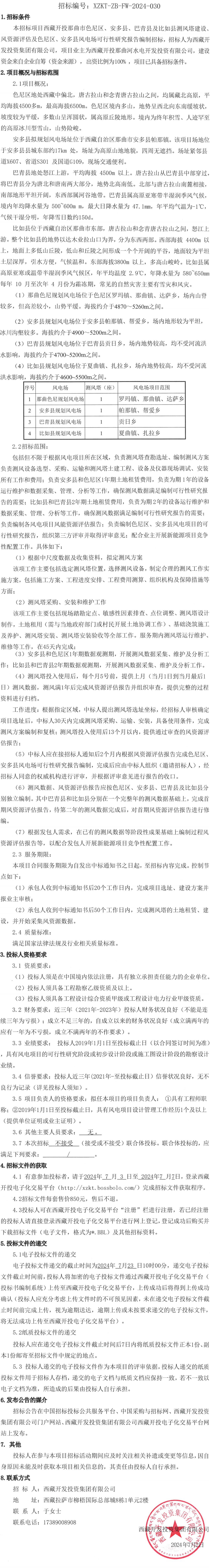 西藏開投那曲市測風塔建設、風資源評估及色尼區(qū)、安多縣風電場可行性研究報告編制招標
